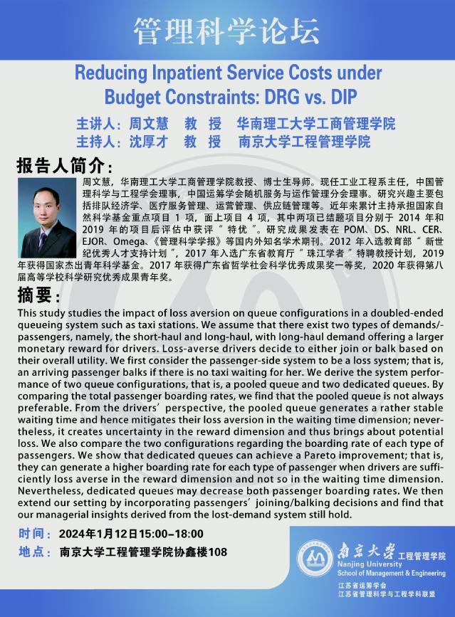 管理科学论坛:Reducing Inpatient Service Costs under Budget Constraints: DRG vs. DIP