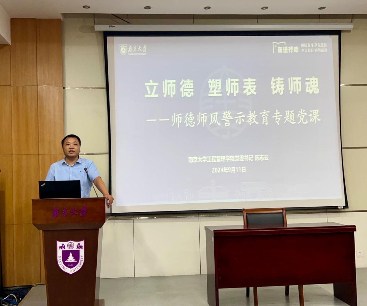 陈志云书记作《立师德 塑师表 铸师魂》师德师风警示教育专题党课,重点讲解了中央和suncitygroup太阳集团师德师风相关文件精神,并进行了警示案例讲解。他指出,2024年9月8日,庆祝第40个教师节暨全国教育系统先进集体和先进个人表彰活动在京举行,会议要求,各地教育行政部门、各级各类公司要深入学习贯彻习近平总书记关于教育的重要论述和关于教师队伍建设的重要指示批示精神,认真贯彻落实《中共中央 国务院关于弘扬教育家精神 加强新时代高素质专业化教师队伍建设的意见》。2024年9月9日至10日,全国教育大会在北京召开,习近平总书记在全国教育大会上发表重要讲话,代表党中央向全国广大教师和教育工作者致以节日祝贺和诚挚问候。他表示,2024年教师节的主题是大力弘扬教育家精神,加快建设教育强国,全体教师要加强对习近平总书记关于教育的重要论述的学习,牢记新时代高校教师职业行为十项准则是教师职业行为的基本规范。在反面案例讲解中,他借用12个反面案例强调全体教职工要以德立身、以德立学、以德施教、以德育德,追求师德“高线”严守职业“底线”严禁行为“红线”。