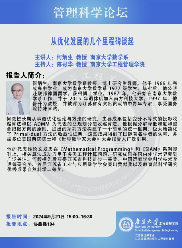 管理科学论坛:从优化发展的几个里程碑谈起
