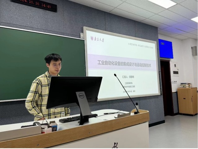 Dr. Yuan Liming from the Department of Control Science and Intelligent Engineering gave a lecture entitled ‘Integrated Design and Motion Control Technology of Industrial Automation Equipment’. Aiming at the lack of unified planning and low design efficiency of mechanical-electrical control modules of production line automation equipment, he proposed an integrated optimization technology of machine-control parameters based on modern control theory in order to improve the flexible production capacity. He explored the application of optimal and robust control algorithms in precision motion control of multi-axis motor-driven platforms, and investigated the conservative reduction methods of their constraints. He also introduced the design technology of precision flexible micro-motion platforms for semiconductor chip manufacturing process requirements.