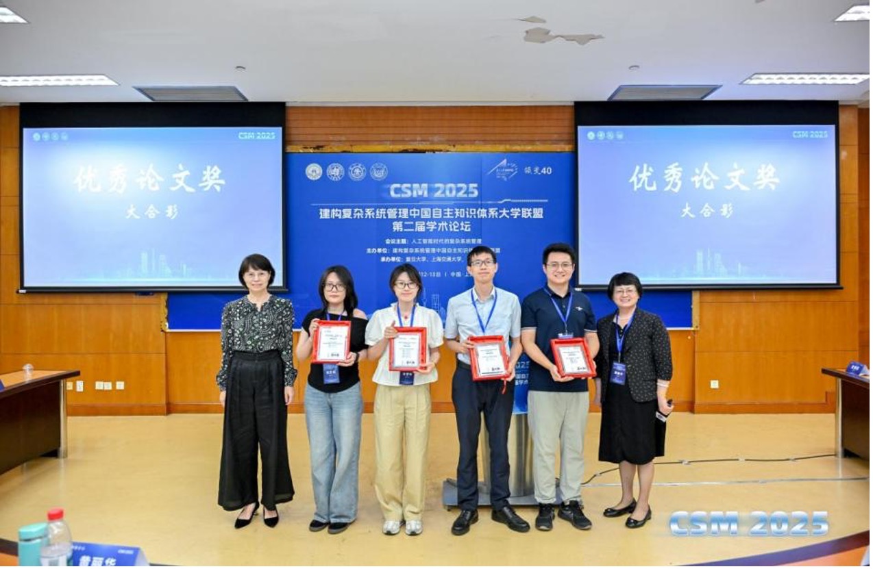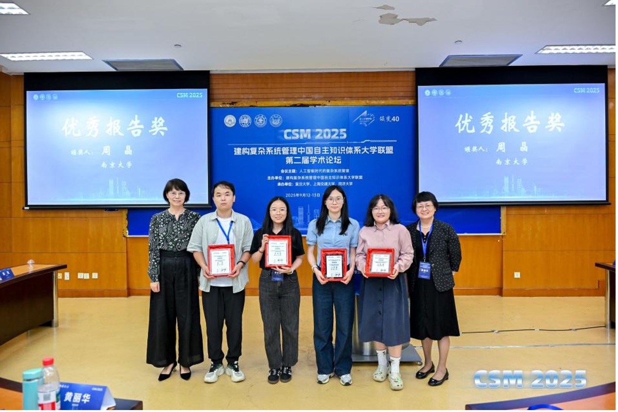 On behalf of the Sheng Zhaohan Complex Systems Management Development Fund, Nanjing University, Professor Sheng Zhaohan presented the awards to the winners. The winners are Tan Yuejin from National University of Defense Technology, Zeng Saixing from Shanghai Jiao Tong University, Zeng Dajun from University of Chinese Academy of Sciences, Tong Yu from School of Management, Zhejiang University, and Fang Chao from Xi'an Jiaotong University (in order of age).