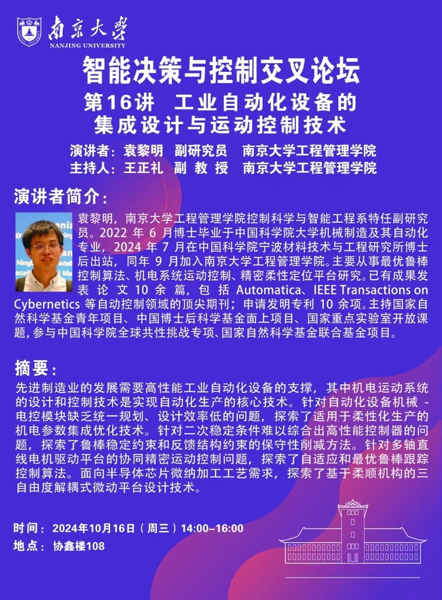 智能决策与控制交叉论坛:工业自动化设备的集成设计与运动控制技术