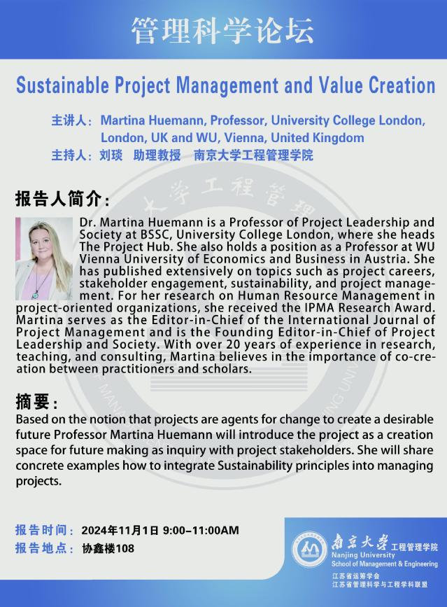 管理科学论坛:Sustainable Project Management and Value Creation