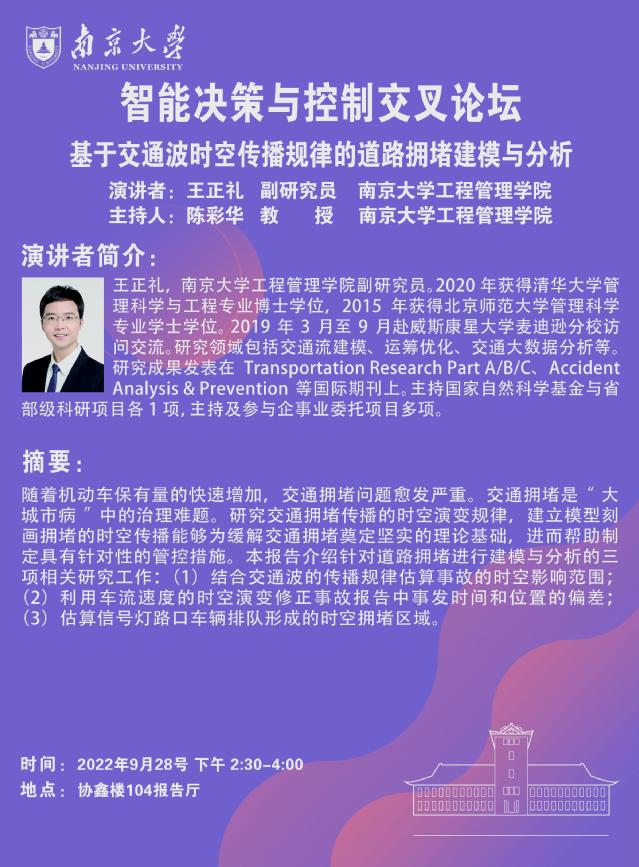 智能决策与控制交叉论坛:基于交通波时空传播规律的道路拥堵建模与分析