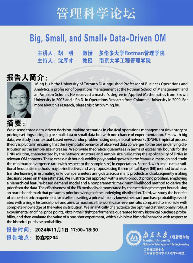 管理科学论坛:Big, Small, and Small+ Data-Driven OM